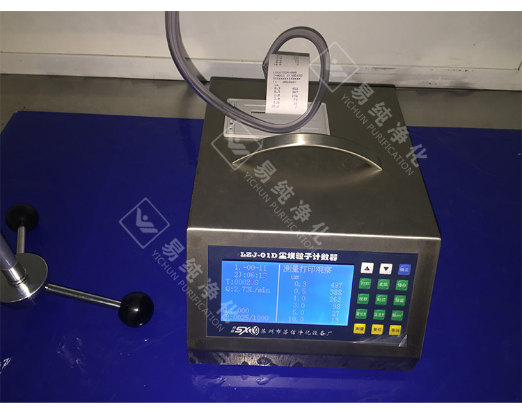 在吹淋室外安裝壓差表,將其測管通過能密封的孔置于吹淋室內距地面1m高,距內壁不小于500px處。關好吹淋室的門,啟動吹淋室的風機。15秒鐘后測量室內外壓差。重復測量三次。